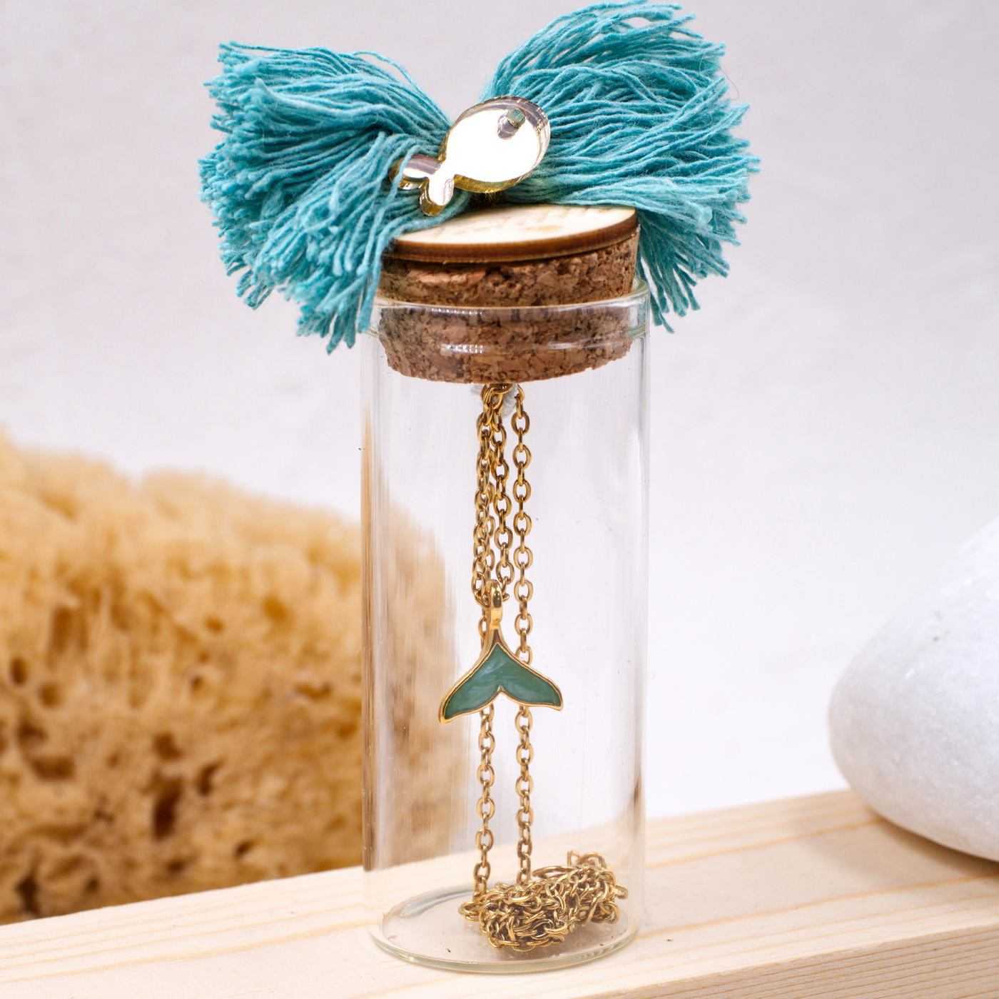 Xειροποίητo κολιέ με σμάλτο σε μπουκαλάκι - Blue Mermaid
