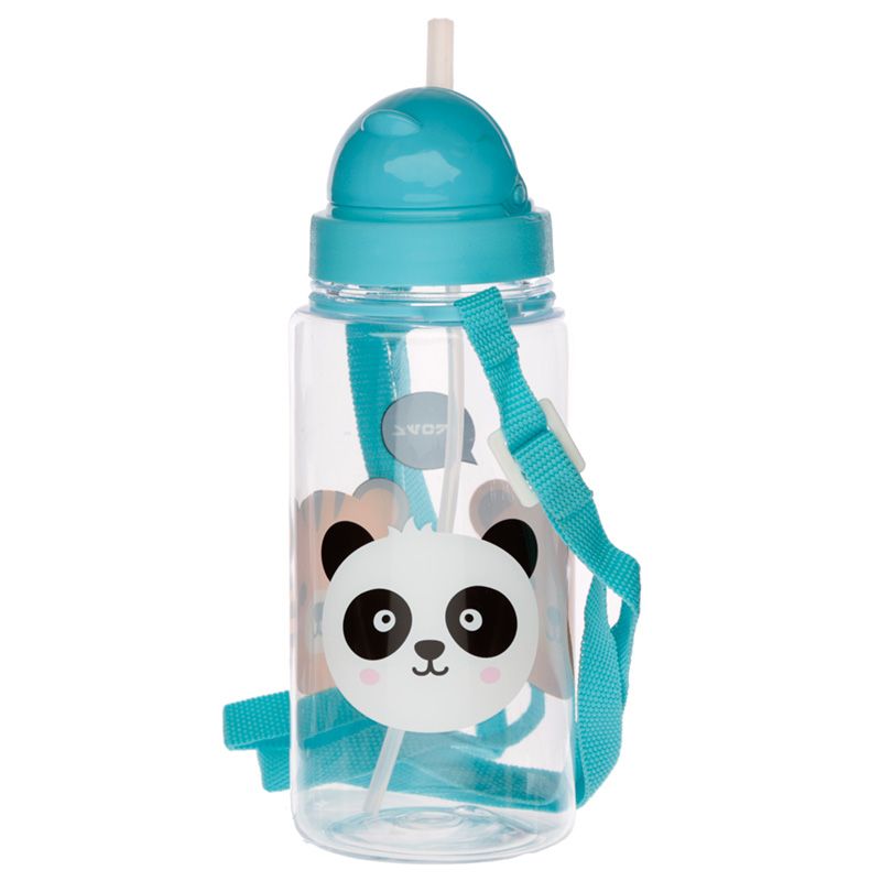 Παιδικό μπουκάλι με χαριτωμένο ζωάκι της ζούγκλας, με λουράκι και αναδιπλούμενο καλαμάκι.