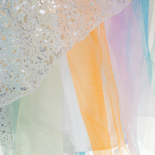 Το σετ περιλαμβάνει φόρεμα, χρυσά φτερά και στέκα με κέρας μονόκερου – όλα όσα χρειάζεται μια μικρή πριγκίπισσα χωρίς επιπλέον αγορές. Το κοστούμι φοριέται εύκολα πάνω από το κεφάλι, χωρίς κουμπιά ή φερμουάρ, ώστε το παιδί να ντύνεται μόνο του και να μη χάνει ούτε λεπτό από το παιχνίδι.