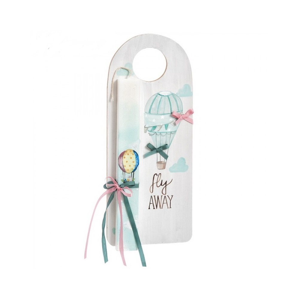 Χειροποίητη Λαμπάδα Σε Ξύλινο Διακοσμητικό Πόρτας - Αερόστατο