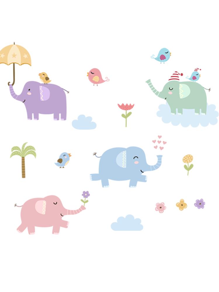 Παιδικό Αυτοκόλλητο Τοίχου - Colourful Elephants