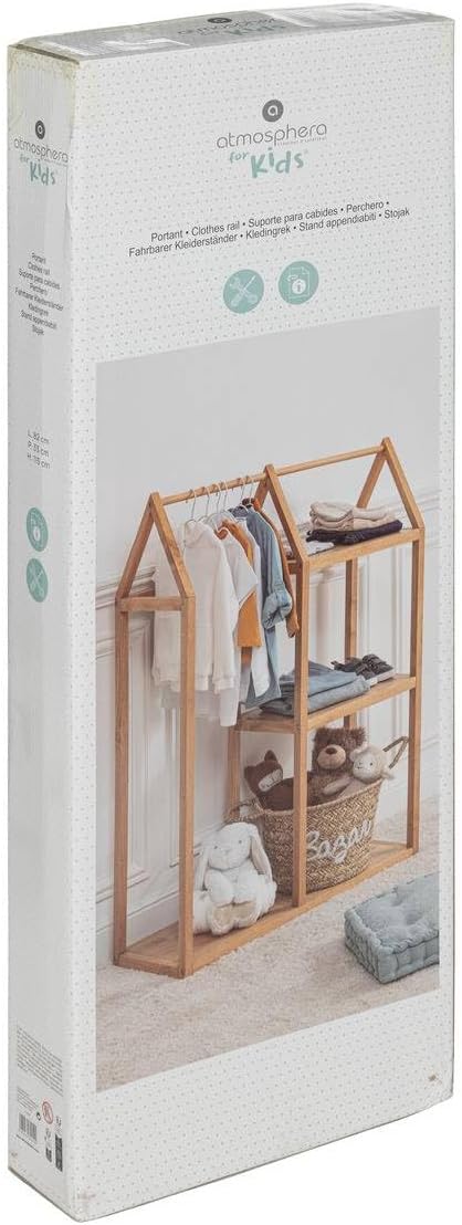 Η κρεμάστρα διαθέτει ανθεκτική μεταλλική κατασκευή, ενώ τα 3 ευρύχωρα ράφια προσφέρουν αρκετό χώρο για παπούτσια, τσάντες και αξεσουάρ. Η μπάρα ανάρτησης είναι ιδανική για καθημερινά ρούχα, παλτά και στολές. Το ιδανικό ύψος της (115 cm) επιτρέπει στα παιδιά να κρεμούν μόνα τους τα ρούχα τους, ενισχύοντας την αυτονομία τους.