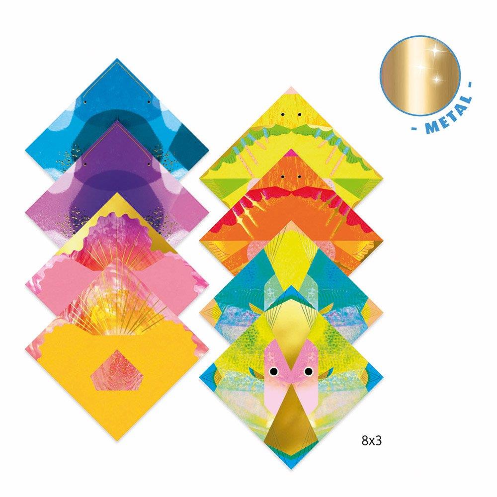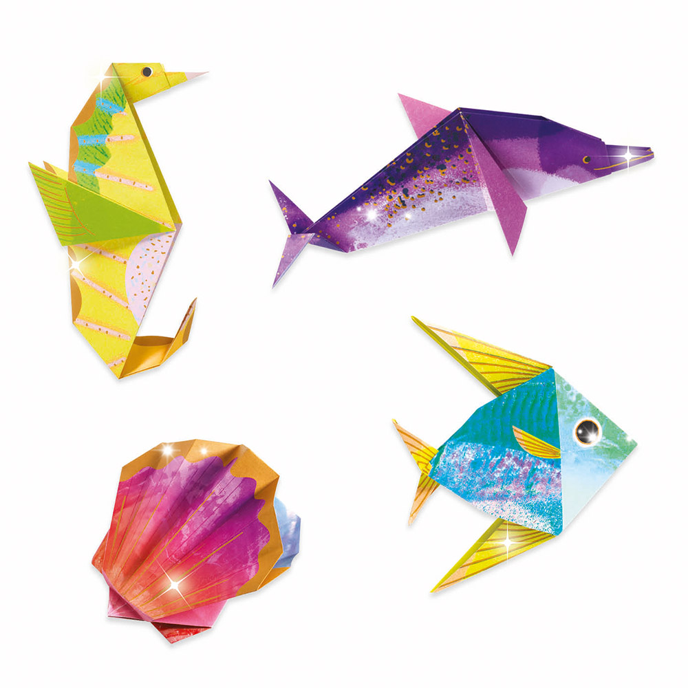 Αυτό το σετ κατασκευής οριγκάμι ¨ψαράκια¨ της Djeco είναι μια υπέροχη εισαγωγή στην τέχνη του διπλώματος χαρτιού. Ακολουθήστε τις οδηγίες για να ολοκληρώσετε 4 διαφορετικά θαλάσσια πλάσματα. Κάθε πακέτο περιέχει 24 φύλλα, διάστασης 20x20εκ. το κάθε ένα, με σχέδια και μεταλλικές λεπτομέρειες και μπορείτε να δημιουργήσετε 3 αντίτυπα σε κάθε σχέδιο. Κατάλληλο από 7 έως 13 ετών. Διαστάσεις συσκευασίας: 22 x 23 εκ.
