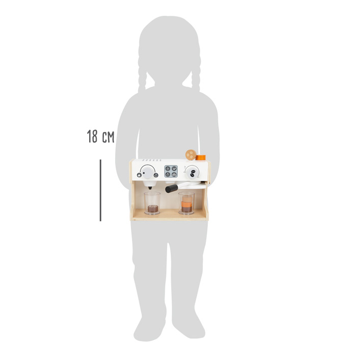Προσοχή σε όλους τους mini-baristas! Με αυτήν την δροσερή επαγγελματική μηχανή καφέ από ξύλο, είναι σίγουρο ότι θα μπορείτε να φτιάξετε το τέλειο φλιτζάνι καφέ στην παιδική κουζίνα. Τα δύο περιστρεφόμενα πόμολα που κάνουν θόρυβο κρότου και μια κινούμενη θήκη φίλτρου που εναποθέτει «καφέ» στα διαφανή ποτήρια καφέ όταν ενεργοποιείται προσφέρουν μια ρεαλιστική εμπειρία παιχνιδιού. Μπορείτε ακόμη και να φτιάξετε διάφορα είδη καφέ! Στο πίσω μέρος υπάρχει ένας εγγράψιμος πίνακας και μια επεξήγηση των διαφορετικών τύπων καφέ. Μια μοντέρνα καφετιέρα με αφρόγαλα που μαγνητίζει τα βλέμματα και τέλεια προσθήκη στην κουζίνα παιχνιδιού! Πίνοντας καφέ όπως η μαμά και ο μπαμπάς! Αυτή η μηχανή καφέ φίλτρου όχι μόνο προάγει το ενεργό παιχνίδι ρόλων, αλλά και την ανάπτυξη των κινητικών δεξιοτήτων. Με αυτήν την καφετιέρα, τα παιδιά μπορούν να μιμηθούν τις καθημερινές τελετουργίες των γονιών τους ενώ μαθαίνουν κοινωνικές δεξιότητες. Τον επόμενο γύρο του καφέ στο πρωινό θα τον φτιάξουν σίγουρα τα παιδιά!