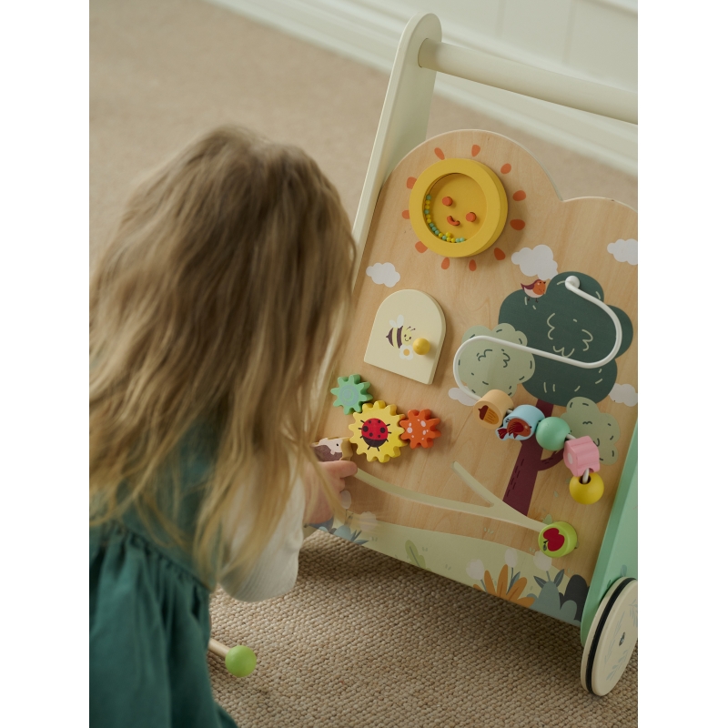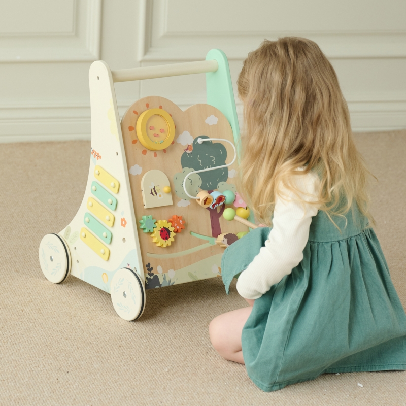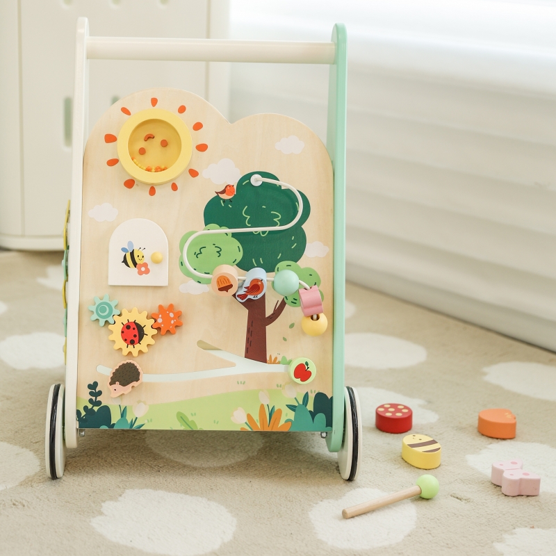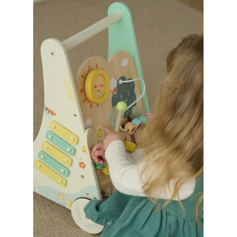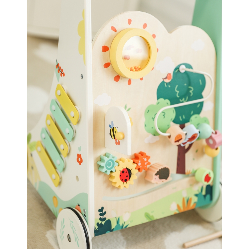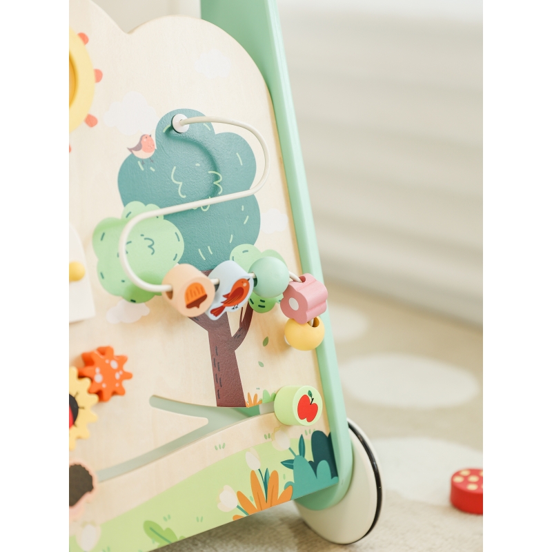 Το Forest Walker δεν είναι απλώς περπατούρι. Είναι πολυλειτουργικό παιχνίδι 9 σε 1: από βοήθημα βάδισης, γίνεται sorter σχημάτων, παιχνίδι με χάντρες, γρανάζια και κύμβαλα. Έτσι, συνεχίζει να απασχολεί το παιδί ακόμα και αφού κατακτήσει το περπάτημα, προσφέροντας μακροχρόνια αξία και διασκέδαση.