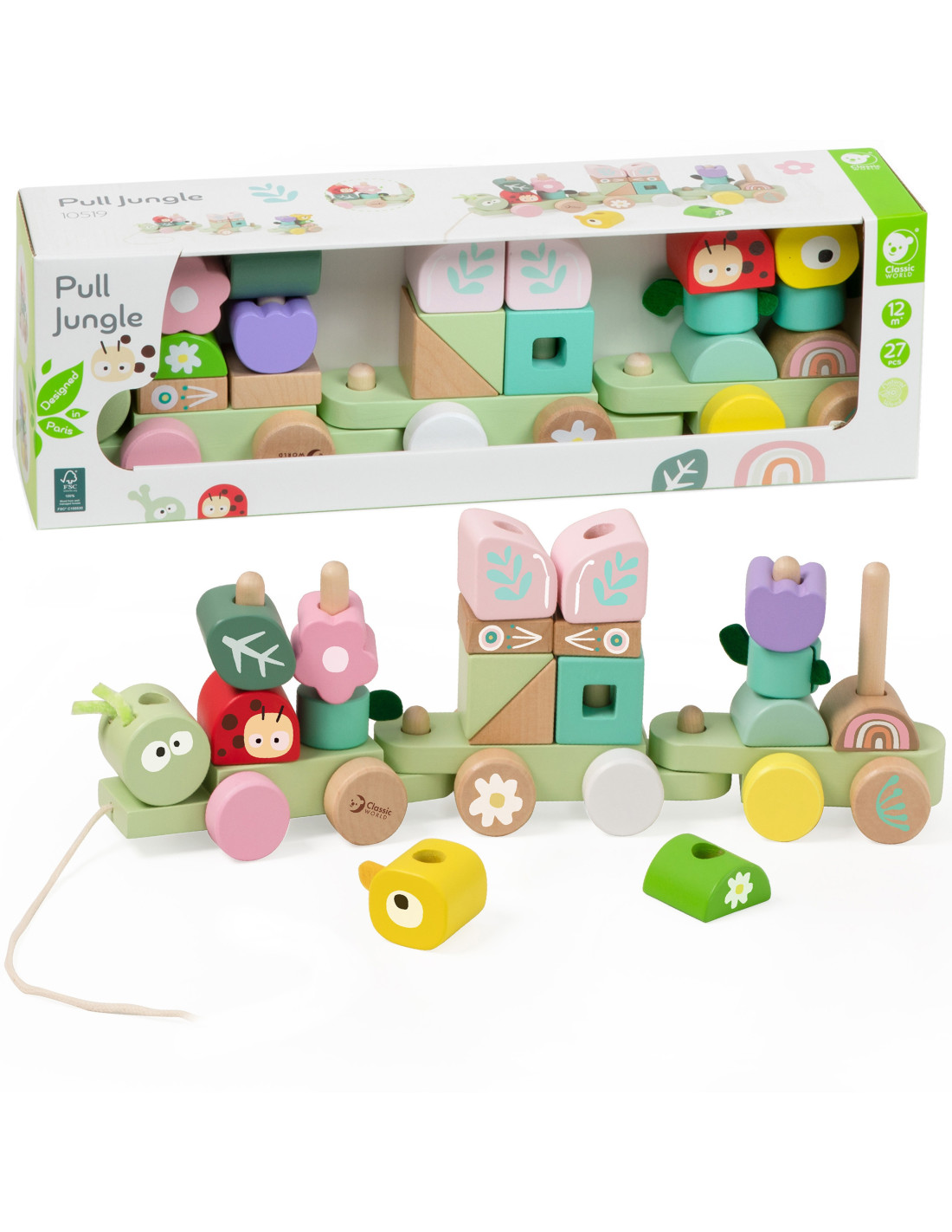 Το Ξύλινο Τρενάκι Κάμπια από την Classic World ταξιδεύει τα παιδιά σε έναν πολύχρωμο κόσμο γεμάτο φύση, ζώα και φαντασία. Με παστέλ αποχρώσεις και jungle θεματολογία, το παιχνίδι γίνεται μια διασκεδαστική εμπειρία εξερεύνησης που ενισχύει την αγάπη για το περιβάλλον και τη δημιουργικότητα.