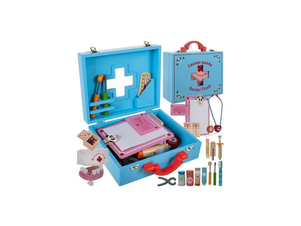 Με 43 διαφορετικά αξεσουάρ, το σετ περιλαμβάνει βαλιτσάκι μεταφοράς, εκπαιδευτική γνάθο με αφαιρούμενα δόντια, στηθοσκόπιο, καπελάκι νοσηλευτή, σύριγγα, θερμόμετρο, οδοντόβουρτσα, καθρέφτη, εργαλεία οδοντιάτρου, φάρμακα, σημειωματάριο και πολλά ακόμη. Όλα οργανωμένα σε ένα πρακτικό βαλιτσάκι για παιχνίδι παντού!