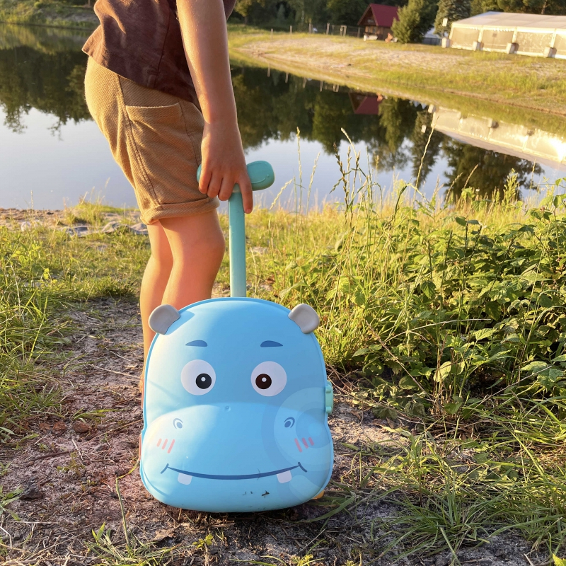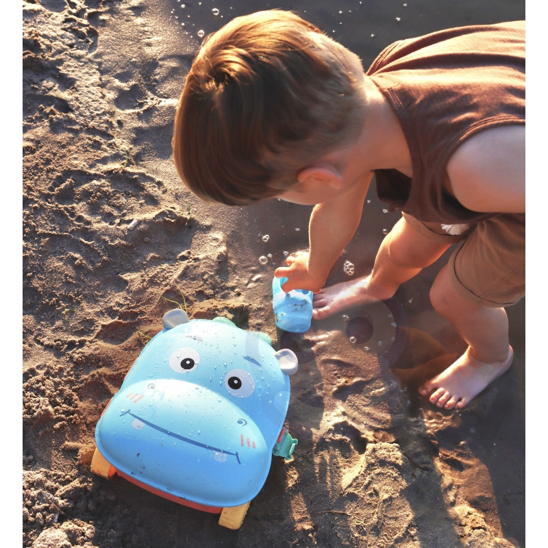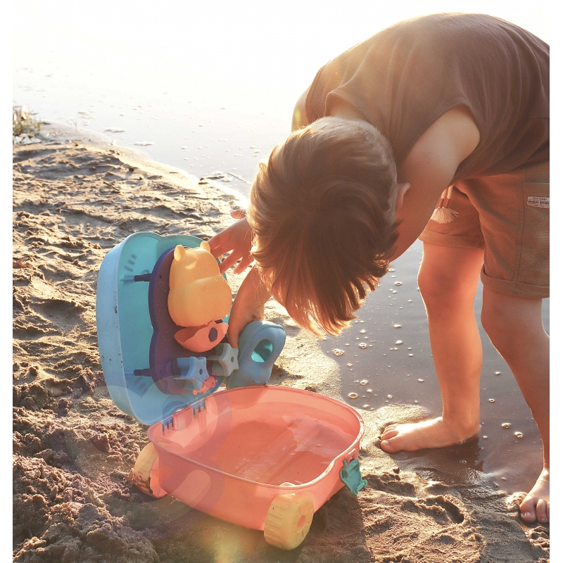 Με πρακτική λαβή και ελαφρύ σχεδιασμό, το βαλιτσάκι μεταφέρεται παντού εύκολα. Το παιδί ανοίγει το ιπποποταμάκι και αποκαλύπτει έναν μικρό κόσμο παιχνιδιού — φτυαράκια, καλούπια και εργαλεία για άμμο ή νερό. Το τέλειο παιχνίδι για μικρούς εξερευνητές που αγαπούν τις καλοκαιρινές περιπέτειες!