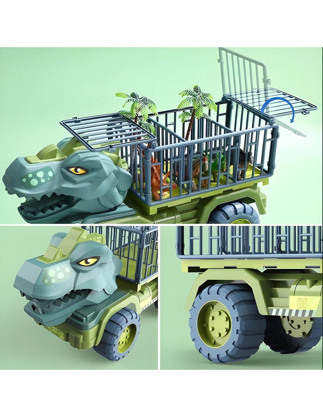 Το Woopie Dinosaur Truck Transporter T-Rex μετατρέπει το παιχνίδι σε μια συναρπαστική προϊστορική αποστολή! Ένα εντυπωσιακό φορτηγό εμπνευσμένο από δεινόσαυρο που λειτουργεί ως όχημα μεταφοράς και ταυτόχρονα ως σκηνή φανταστικών ιστοριών. Με ρεαλιστική υφή δέρματος δεινοσαύρου, δυναμικό σχεδιασμό και εντυπωσιακή παρουσία, τραβά αμέσως το ενδιαφέρον κάθε μικρού εξερευνητή.
