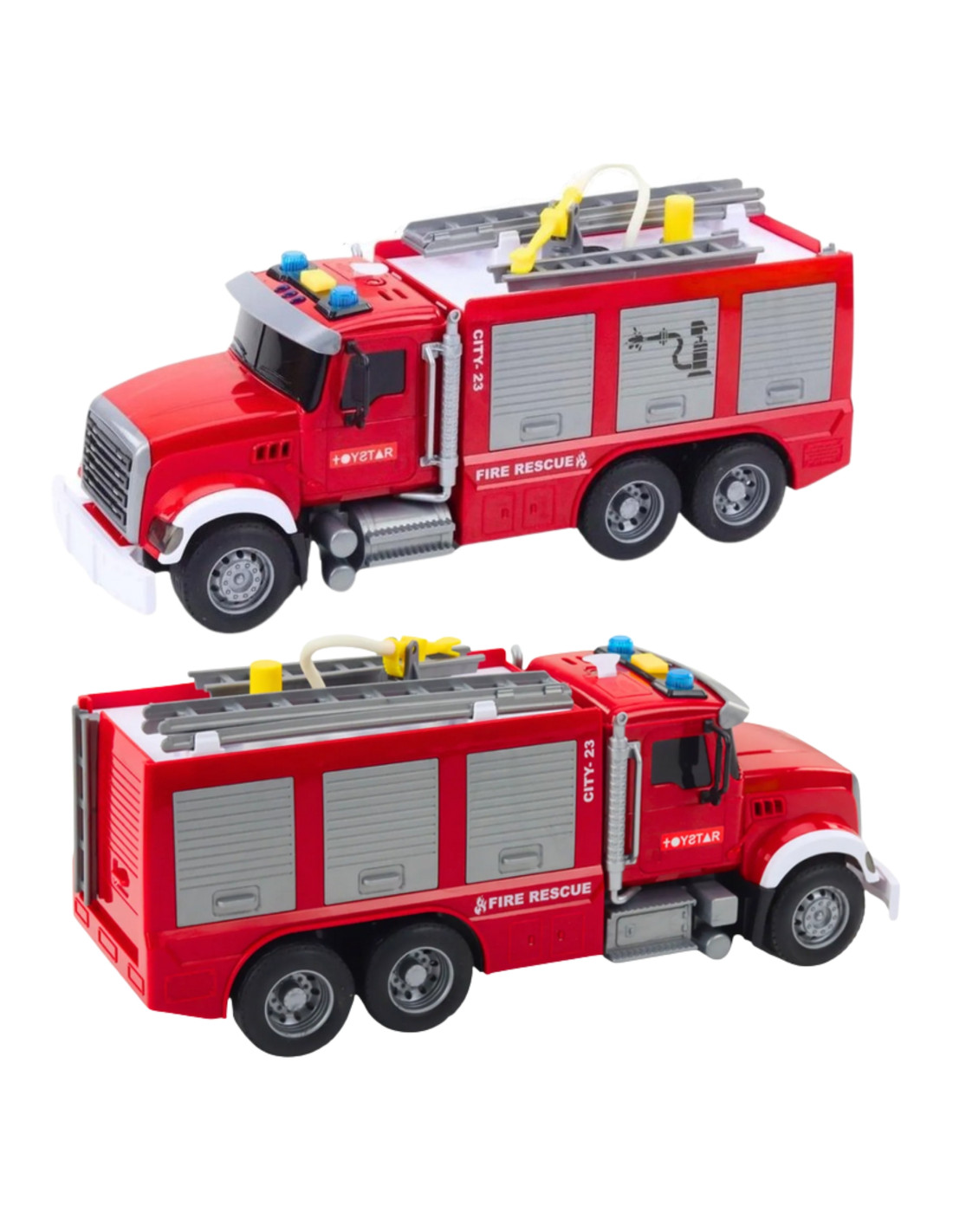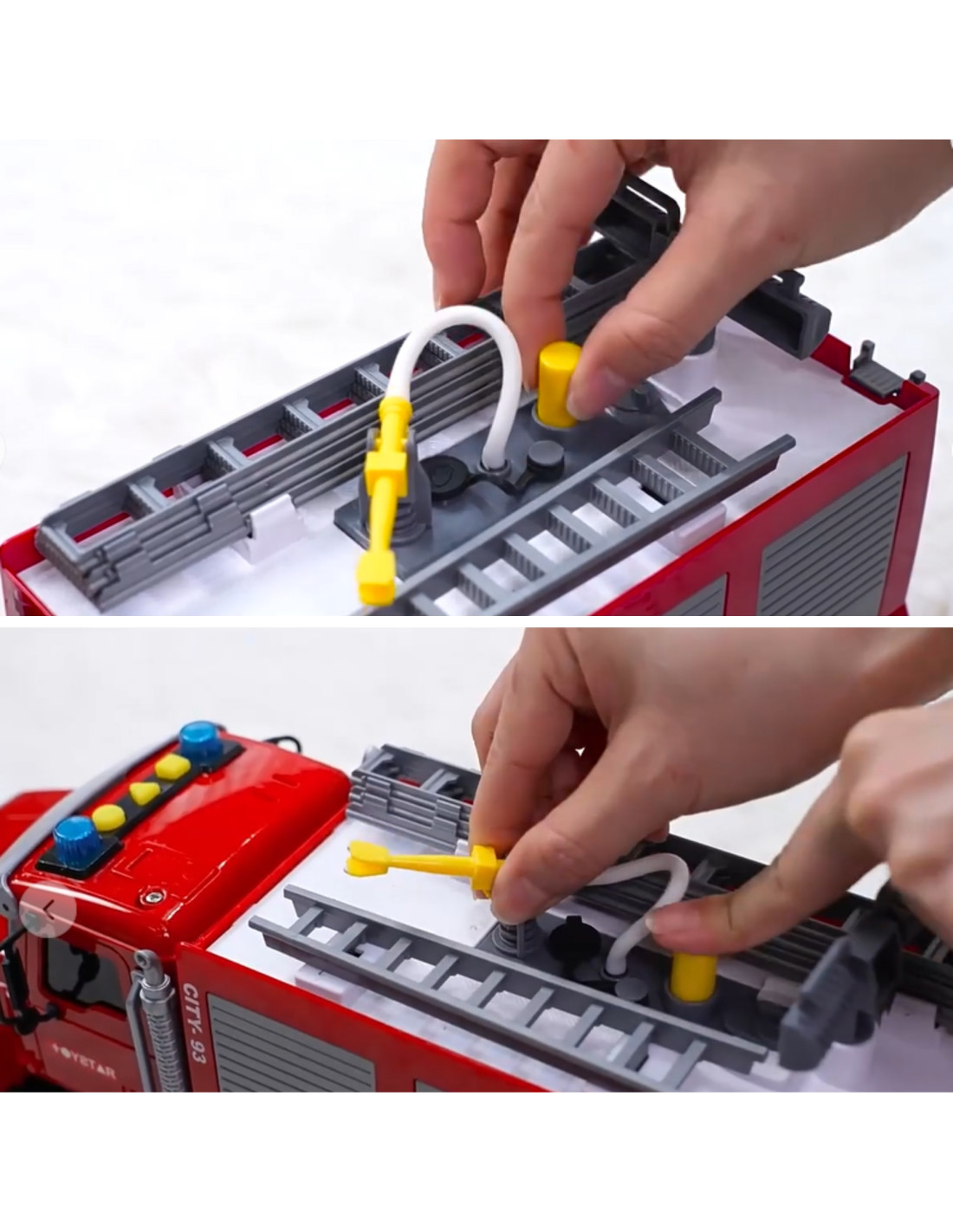 Το παιδικό πυροσβεστικό όχημα διαθέτει λειτουργία νερού με αντλία και δεξαμενή, επιτρέποντας ρεαλιστική “κατάσβεση φωτιάς”. Οι ήχοι σειρήνας και οι φωτεινές ενδείξεις δημιουργούν αληθινή ατμόσφαιρα διάσωσης, ενώ η λειτουργική μάνικα και η επεκτεινόμενη σκάλα ενισχύουν το παιχνίδι ρόλων και τη φαντασία.