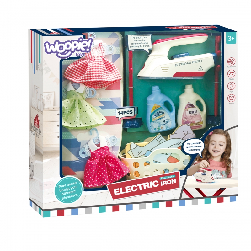 Το σετ σιδερώματος WOOPIE θα δώσει στο παιδί σας πολύ διασκέδαση ως μικρή νοικοκυρά. Το σετ περιλαμβάνει ένα σίδερο , μια σιδερώστρα, ένα καλάθι ρούχων , μια όρθια κρεμάστρα , τρία μικρά κουκλίστικα φορέματα και δύο συσκευασίες υγρού πλυσίματος. Είναι εξοπλισμένο με πολλές λειτουργίες που θα διαφοροποιήσουν τη διασκέδαση: λειτουργία ψεκασμού αληθινού νερού, λαμπερή λάμπα LED και ηχητικά εφέ. Το παιχνίδι λειτουργεί επίσης χωρίς να γεμίζει με νερό. Αυτό είναι ένα τέλειο σετ για παιδιά που λατρεύουν να μιμούνται τους γονείς τους κατά τη διάρκεια των καθημερινών δραστηριοτήτων.