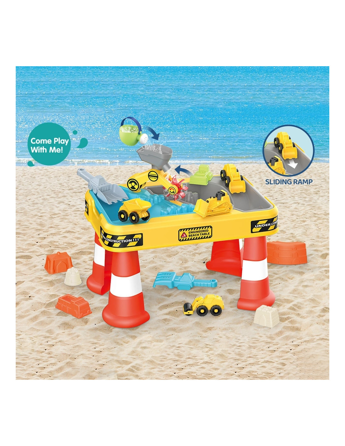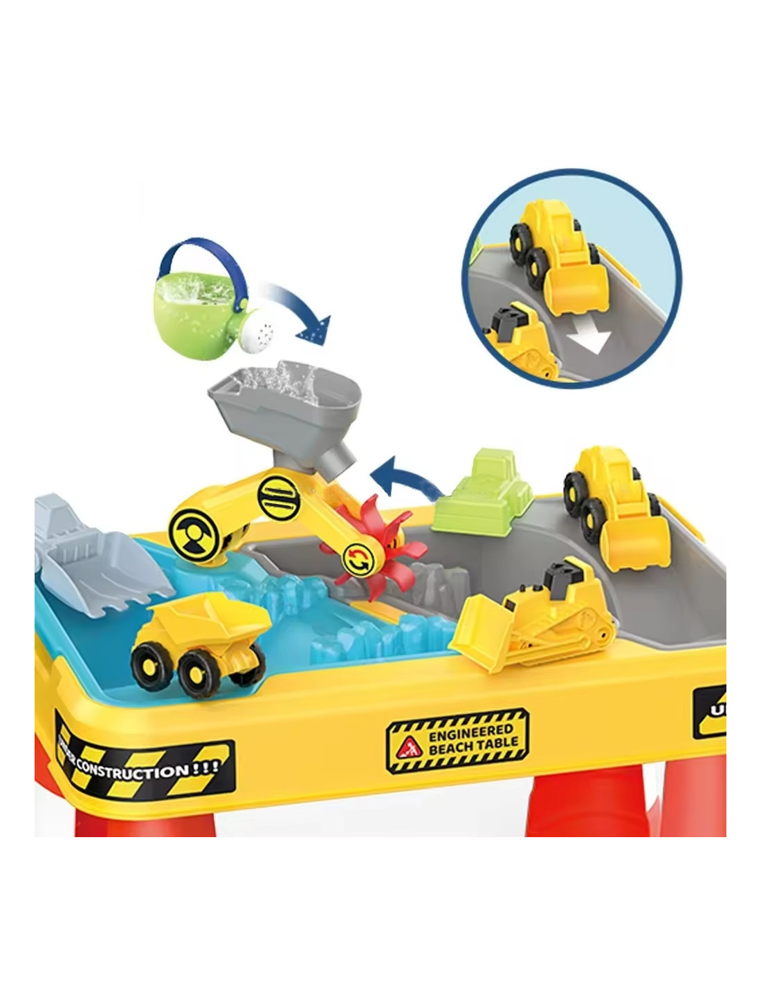 Το τραπέζι νερού και άμμου Woopie 2-σε-1 μεταμορφώνει το παιχνίδι σε ένα συναρπαστικό εργοτάξιο γεμάτο δράση! Με διπλό χώρο για νερό και άμμο, τα παιδιά δημιουργούν, σκάβουν και κατασκευάζουν ασταμάτητα. Ο γερανός, οι ράμπες νερού και η τσουλήθρα προσφέρουν ατελείωτες δυνατότητες παιχνιδιού, ενώ τα 4 οχήματα κατασκευών κάνουν κάθε αποστολή ακόμα πιο ρεαλιστική.