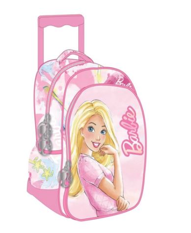 Με ανθεκτικούς τροχούς, αναδιπλούμενη λαβή τρόλεϊ και άνετους ιμάντες πλάτης, αυτή η σχολική τσάντα προσφέρει 2 τρόπους μεταφοράς: σέρνεις ή φοράς! Η Barbie σου δίνει επιλογές, γιατί το στυλ δεν πρέπει να κουράζει!